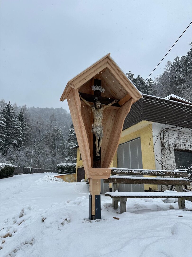 Mit viel Engagement hat Gemeindemitarbeiter Thomas Brandstätter das Wegkreuz instand gesetzt und mit einem neuen Holzdach versehen. Ein herzliches Dankeschön für die wertvolle Arbeit.